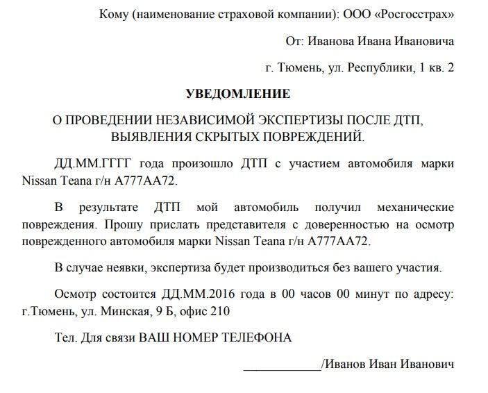 Коммерческое предложение с прайсом на услуги. Уведомление о проведении независимой экспертизы автомобиля